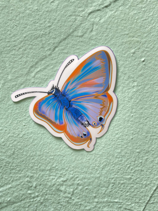 Orange & Blue Butterfly Glossy Vinyl Sticker