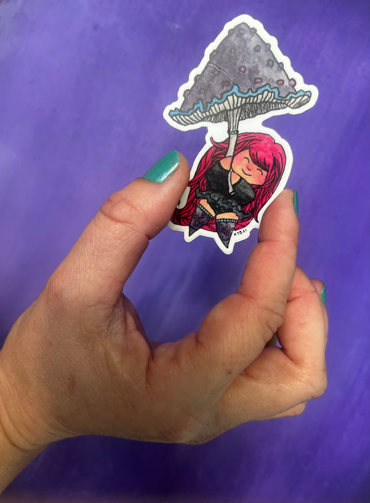 Cute Magenta Pixie with Mushroom Umbrella Vinyl Sticker