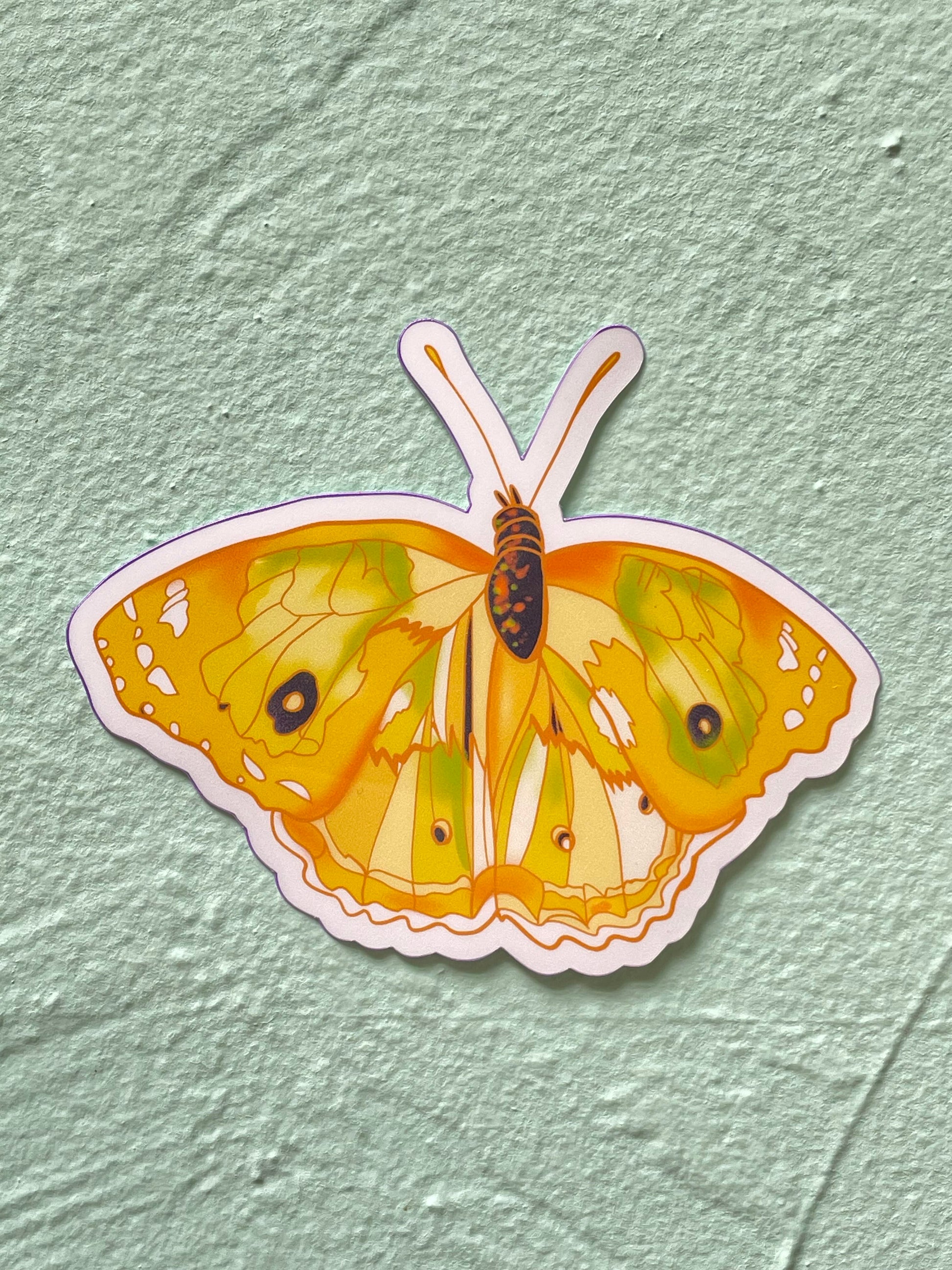 Adorn your laptop, water bottle, notebook, or any smooth surface with this striking yellow butterfly sticker! The perfect gift for the entomology or oddities loving baddie in your life!