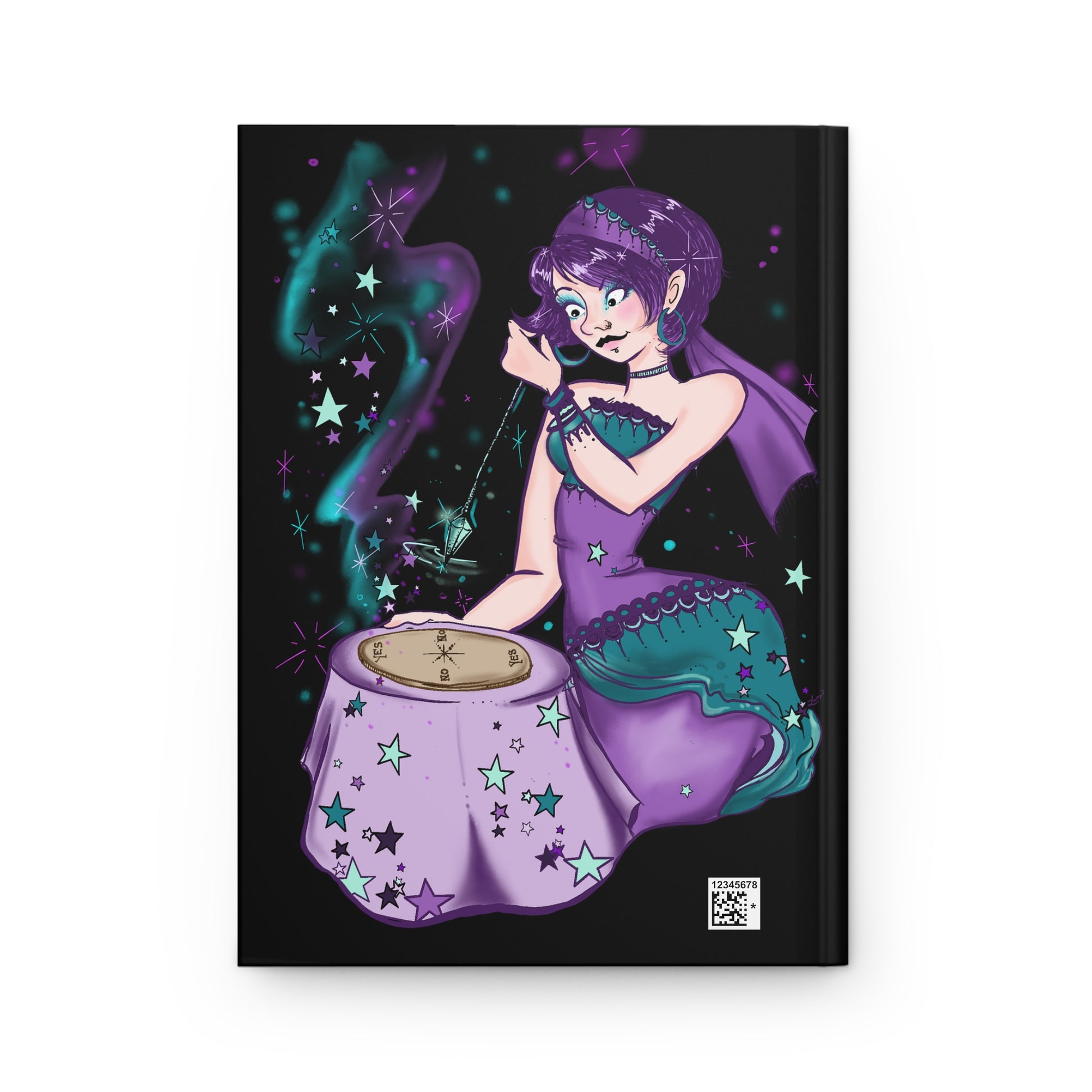 The perfect companion for your travel grimoire, shadow work, or thoughts and feelings while working on tarot or divination studies! 125 blank pages to fill with your hearts desires. Featuring a sturdy matte hardcover, soothing purple and teal hues along with a cute divination witch working with her pendulum at a scrying board. She's suspended in a space of shadows, symbolizing that she trusts only that which is deep within, her intuition. Let the whimiscal cover art guide your inspirations and musings!