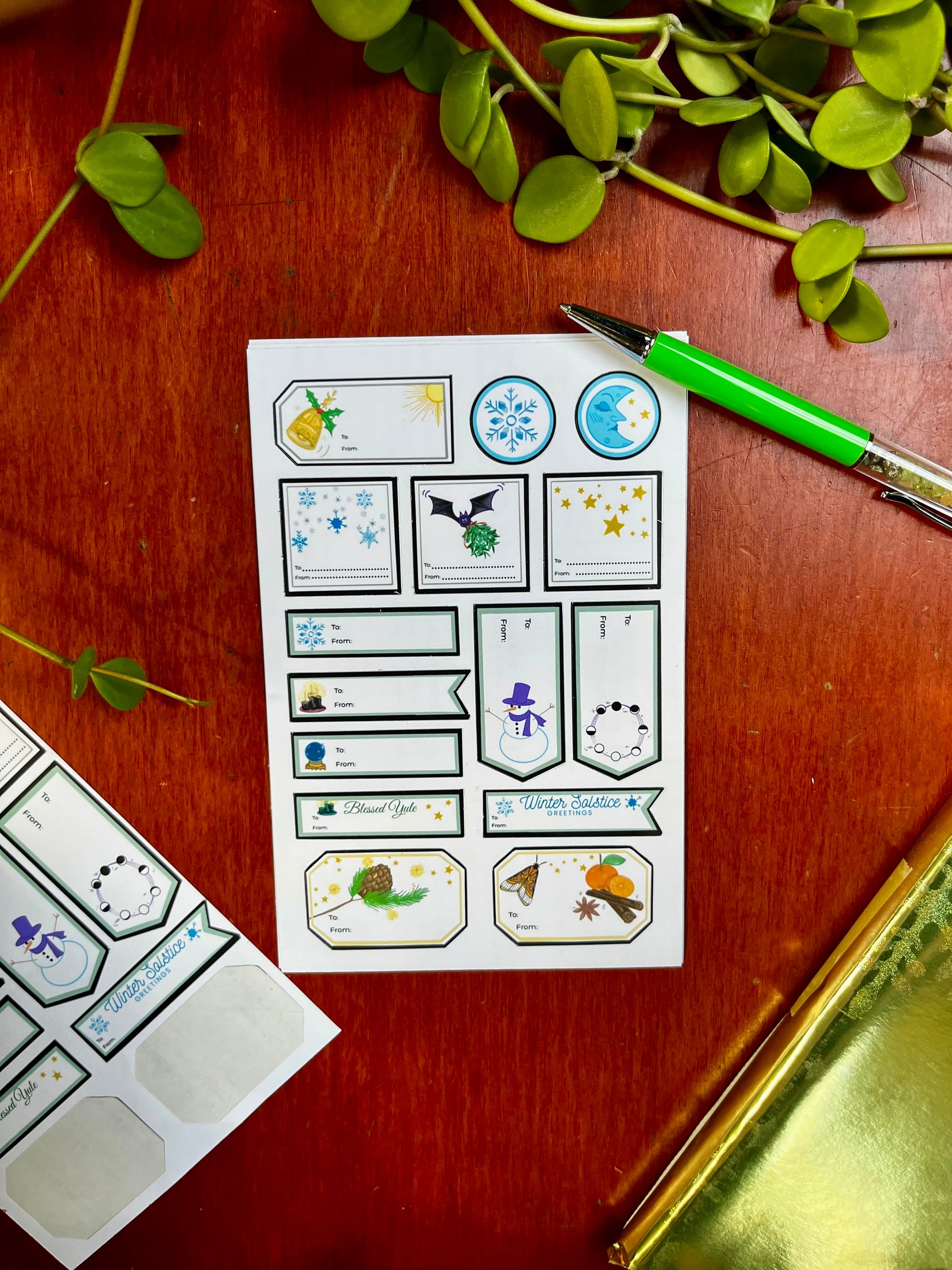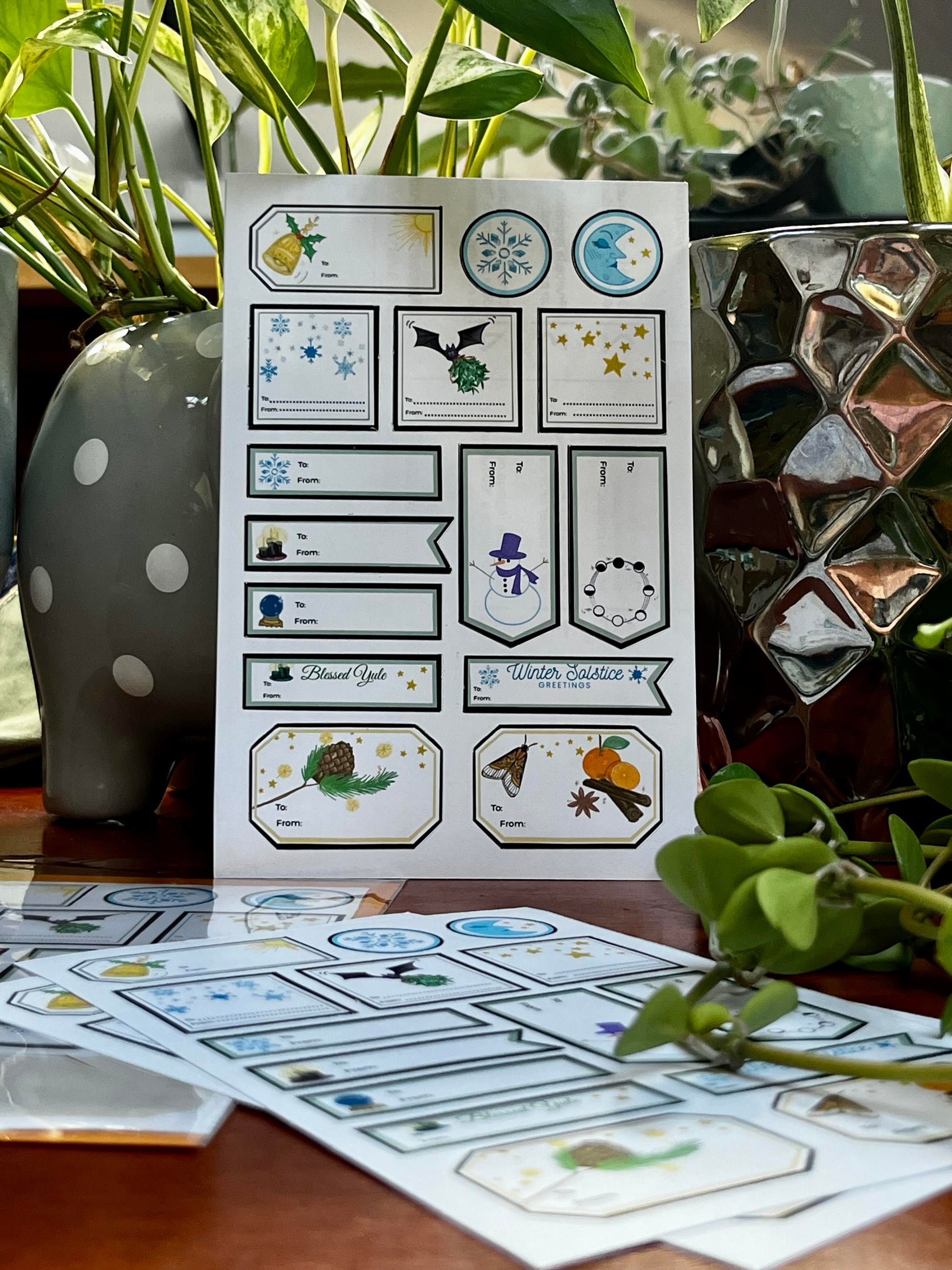 Yule Blessings Gift Tag Stickers | Witchy Solstice Collection